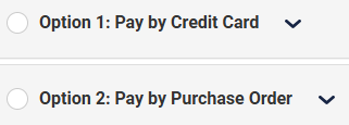 - Select your payment method and use the corresponding form to submit Credit Card information or an authorized Purchase Order (PO) number